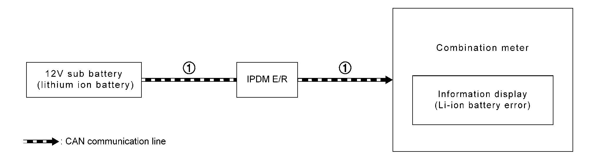 | IPDM E/R | Transmits the li-ion battery error signal received from the 12V sub battery (lithium ion battery) to the combination meter by CAN communication. |