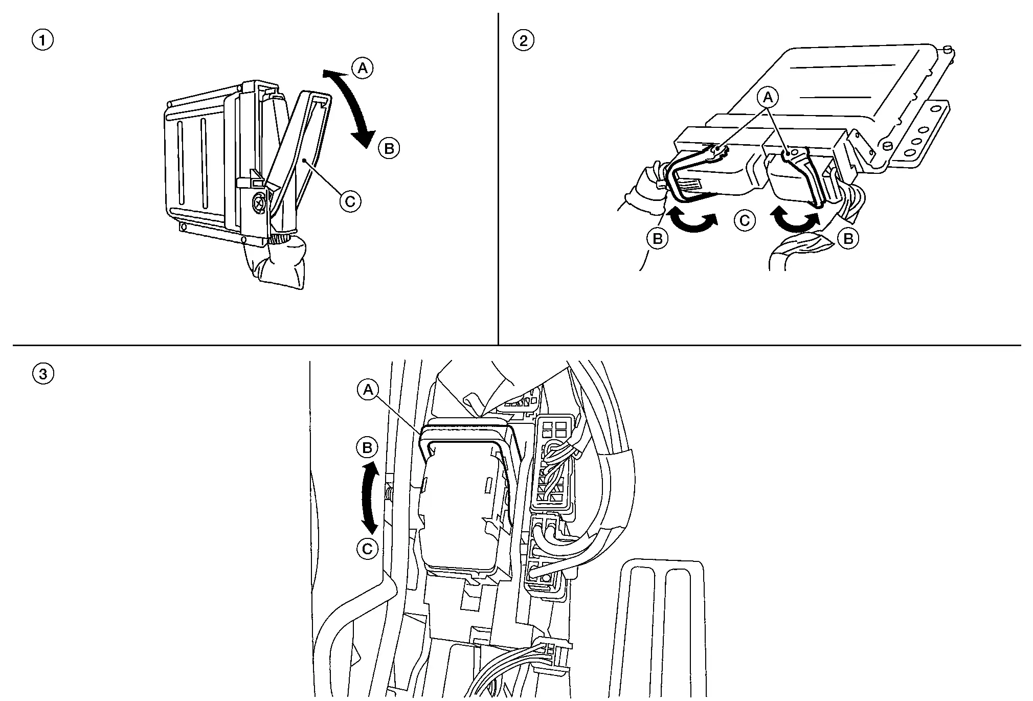 Lever locking type harness connectors are used on certain control units and control modules such as ECM, ABS actuator and electric unit (control unit), etc.
