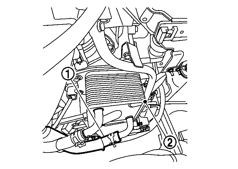 Remove CVT water hose (1) from CVT oil warmer (2).