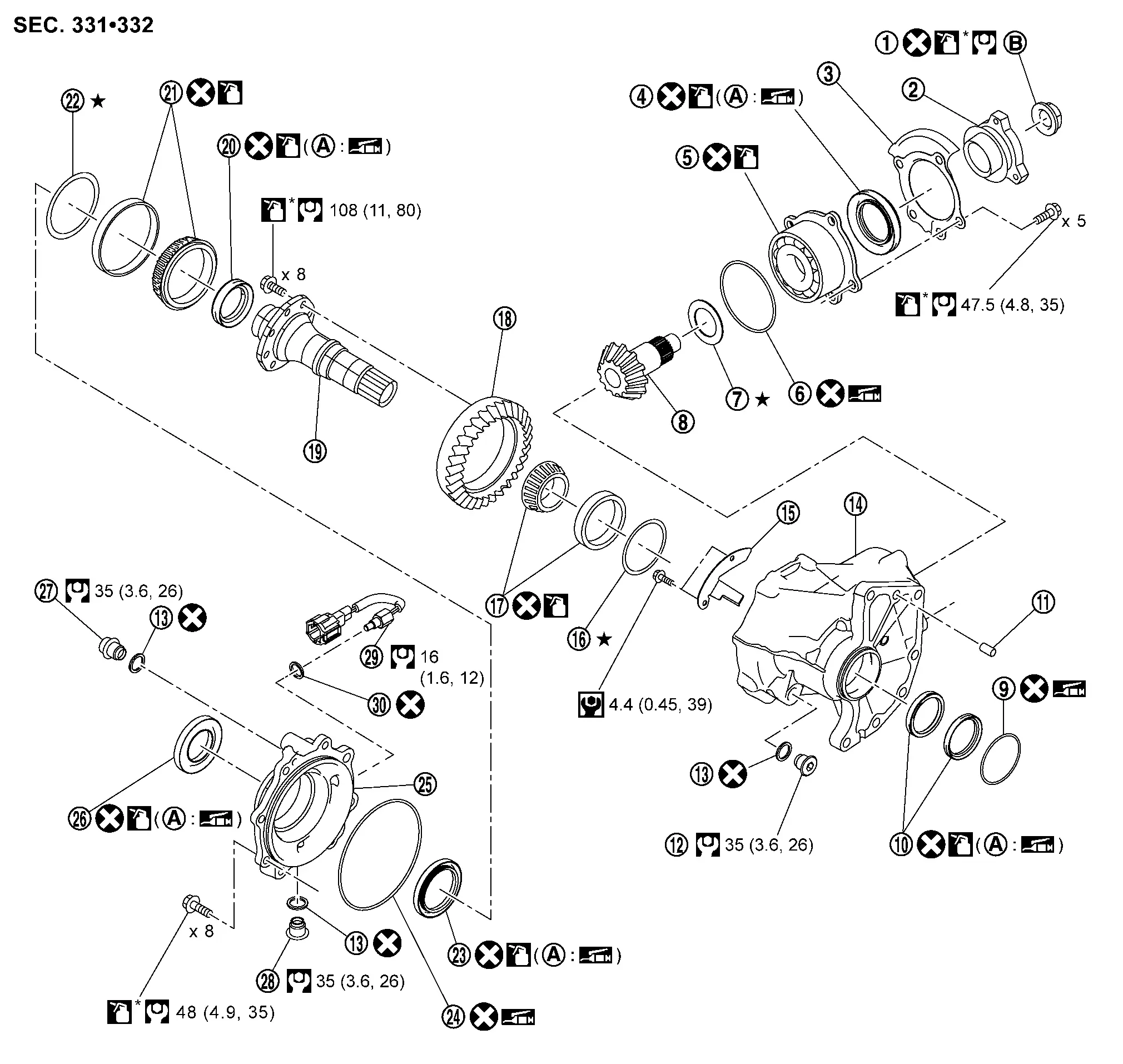 At this timing, O-ring installing to transfer cover is not necessary. Install O-ring after backlash and tooth contact are checked.
