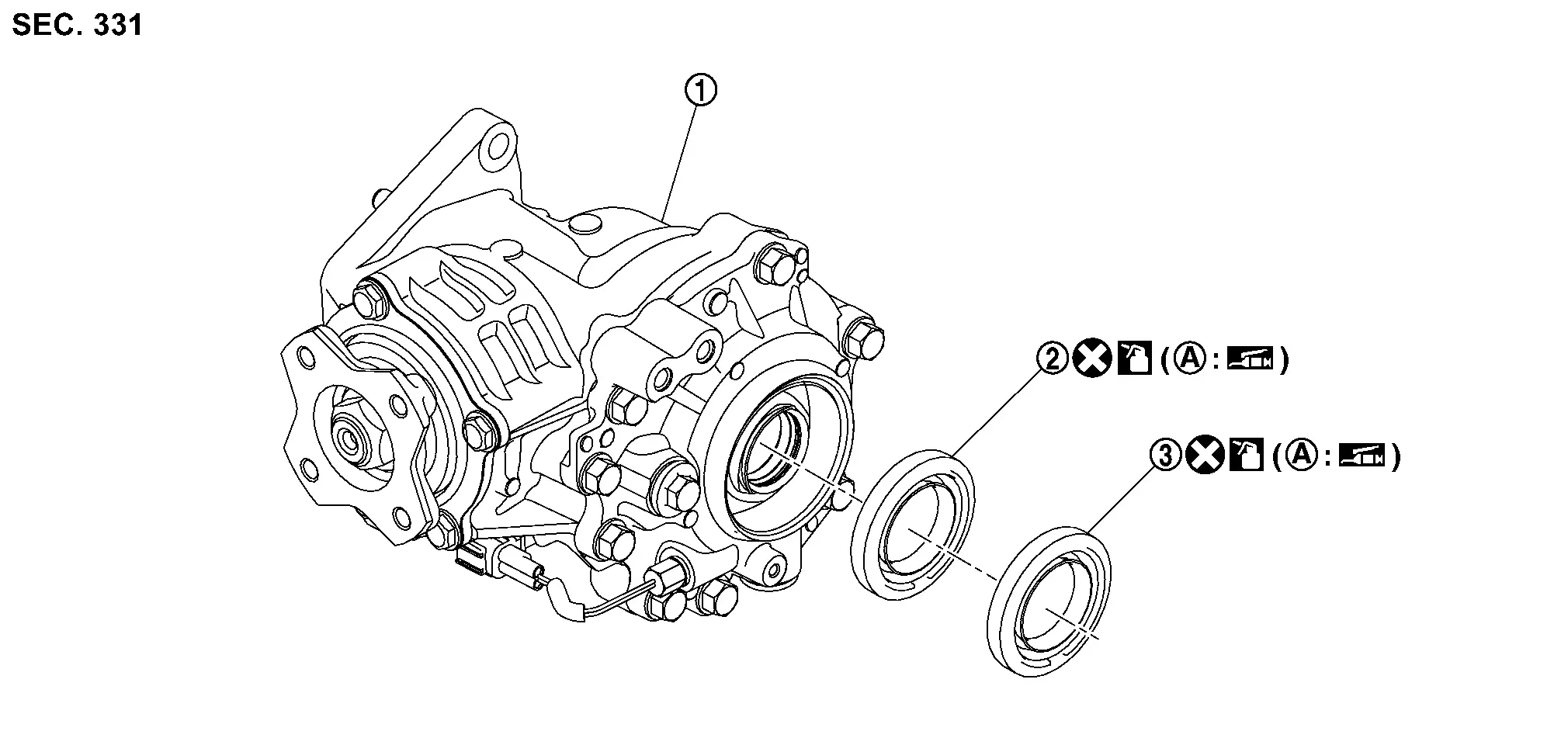 When installing the outer oil seal (1), the notch (A) is located on the lower side.