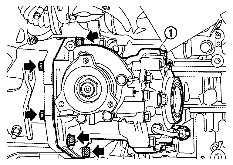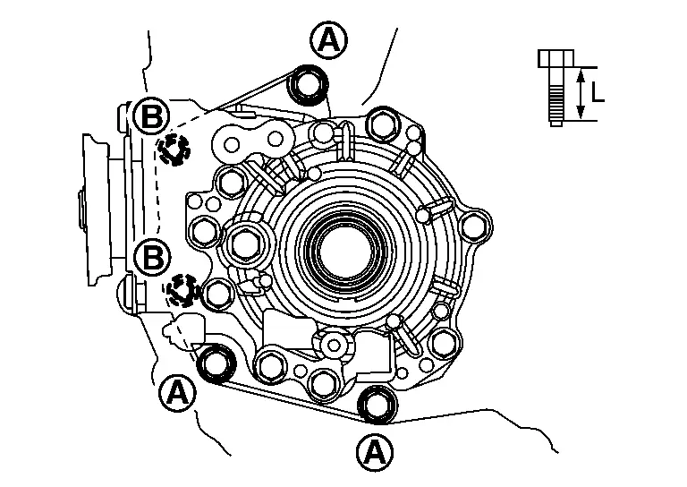 When installing the transfer to the transaxle, install the mounting bolts following the standard below, tighten bolts to the specified torque. For each tightening torque, refer to Exploded View.