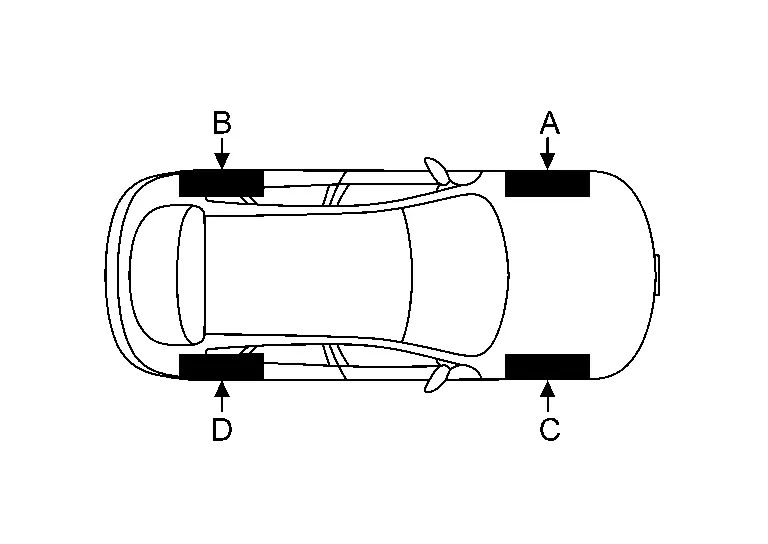 Mark points “A”, “B”, “C” and “D” at the center position of each wheels.