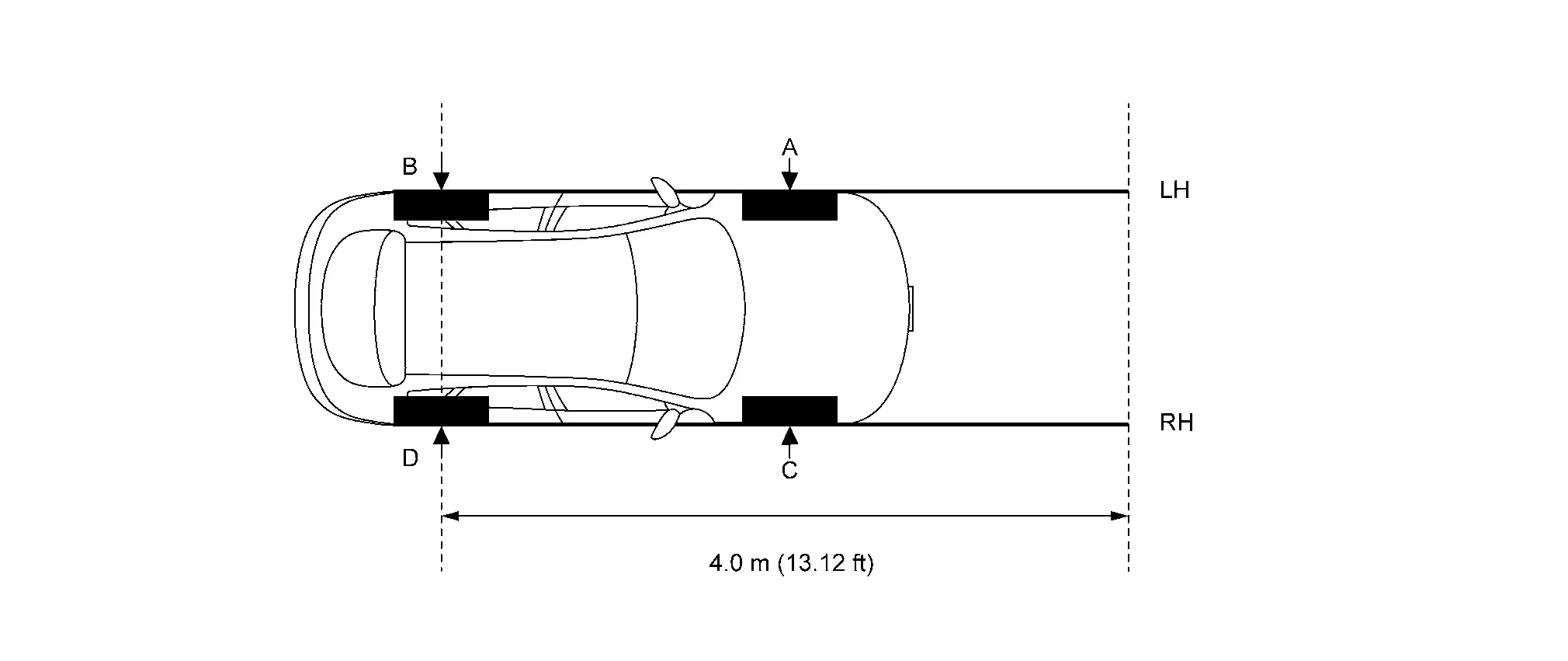 Draw line "LH (RH)" passing through points "A (C)" and "B (D)" on the left (right) side of Nissan Ariya vehicle.