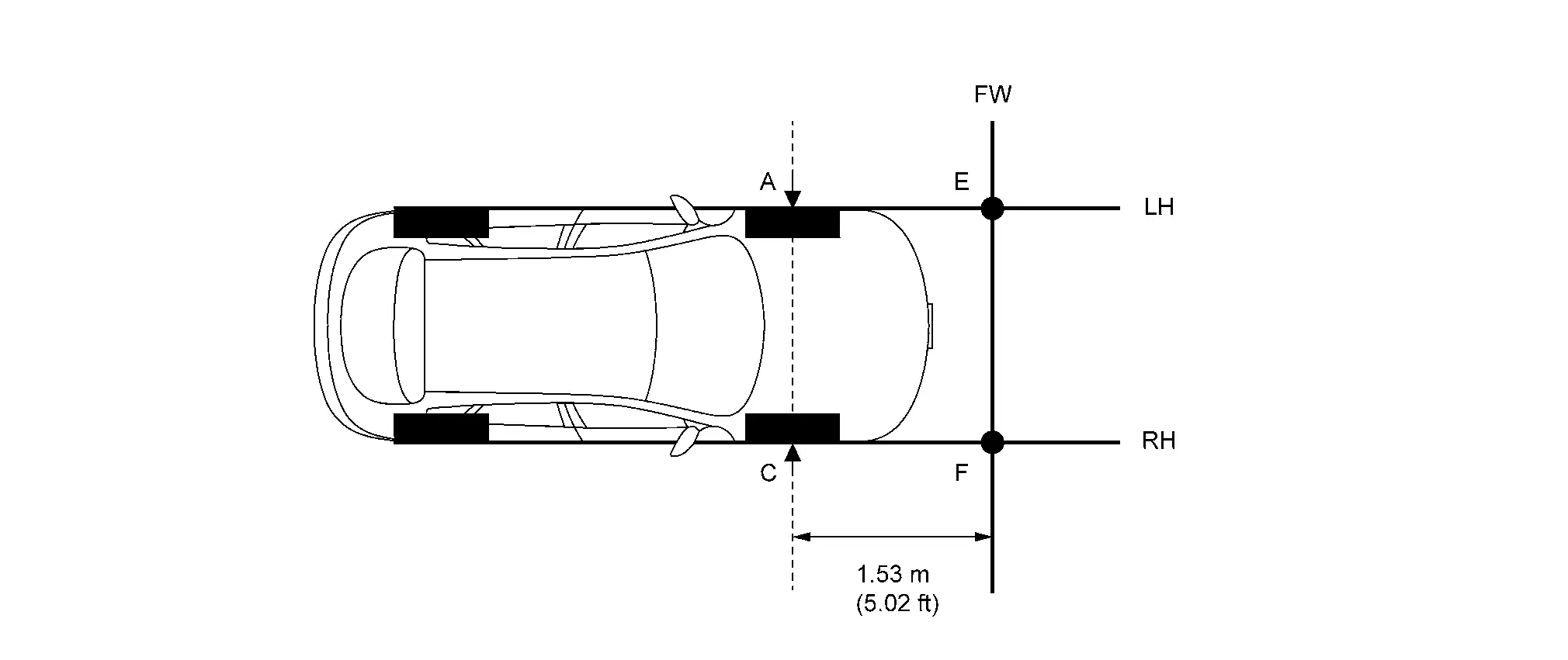 Mark point "E (F)" on the line "LH (RH)" at the positions 1.53 m (5.02 in) from point "A (C)". And then draw line "FW" passing through the points "E" and "F".