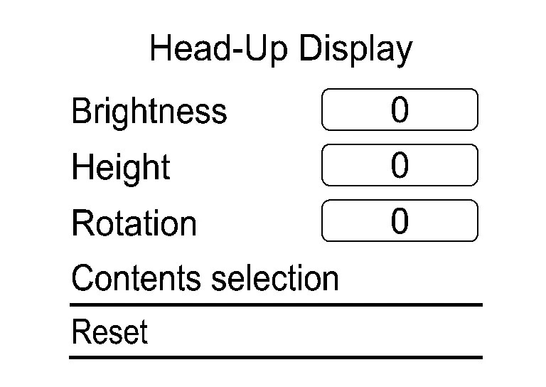 Select "Reset" on the Head Up Display setting screen of the combination meter and reset the setting. Refer to Switch Name and Function.