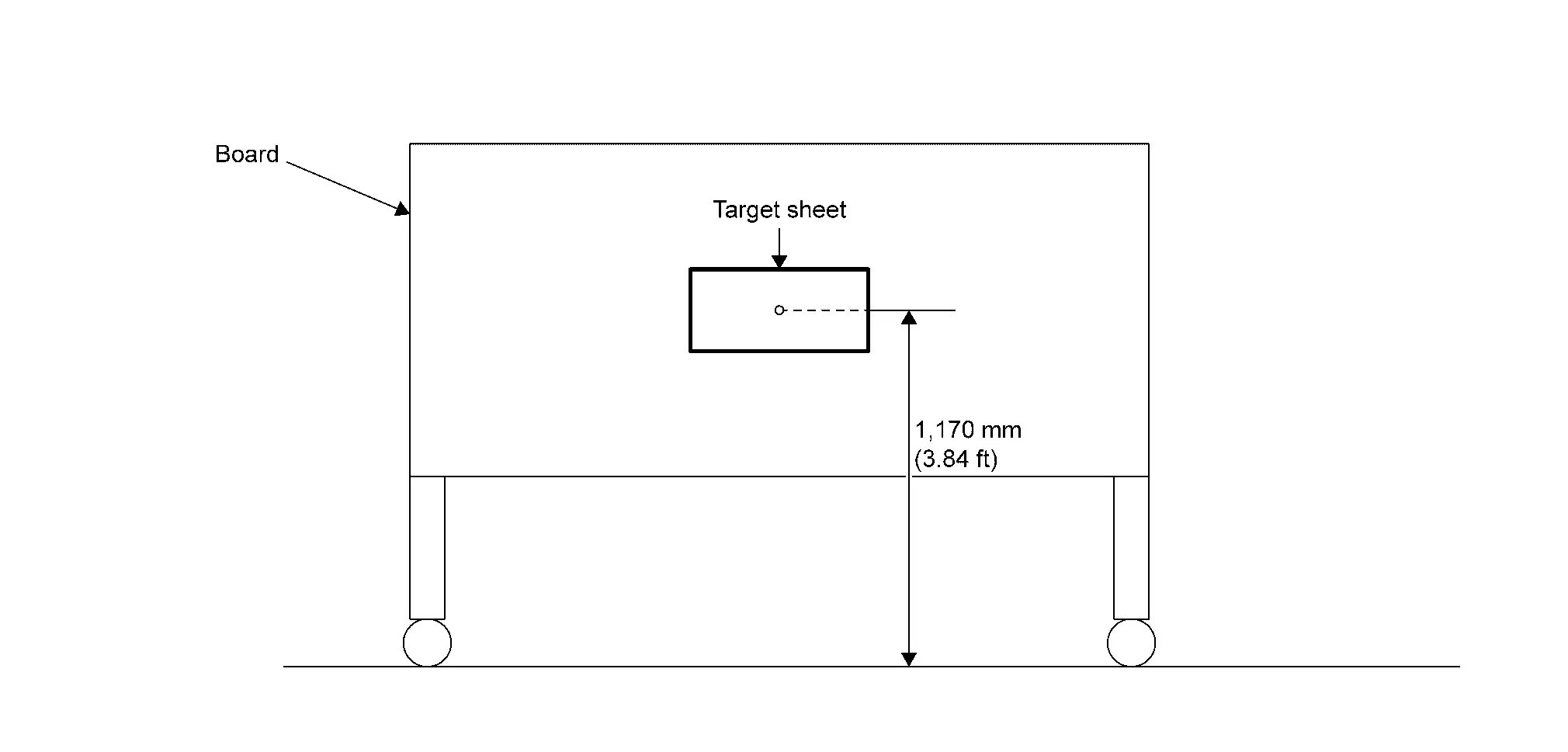 Place the target board on the line "FW" so that the center of the target comes to 560 mm (1.84 ft) from mark point "E".