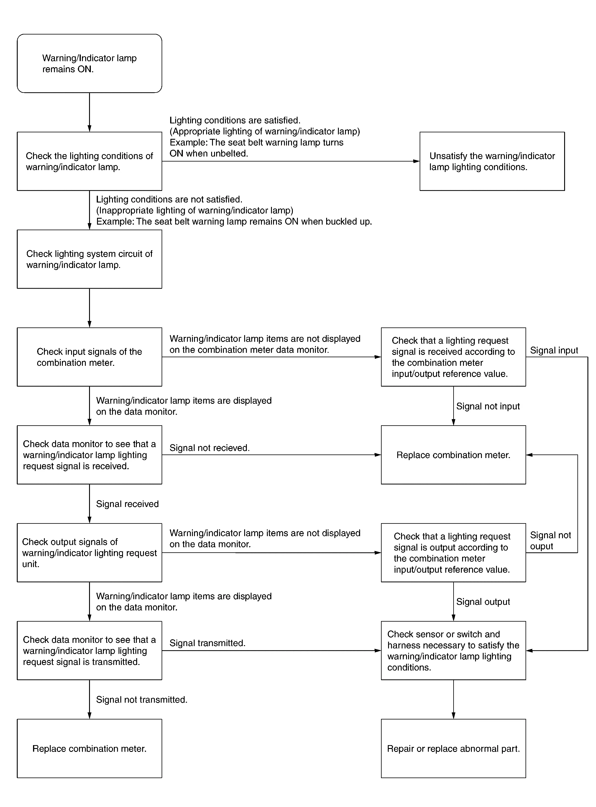Warning/indicator Lamp Remains on