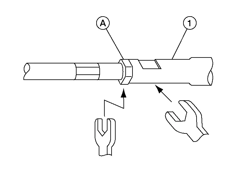 To prevent damage, hold outer socket (1) across flats using suitable tool while loosening inner socket lock nut (A).