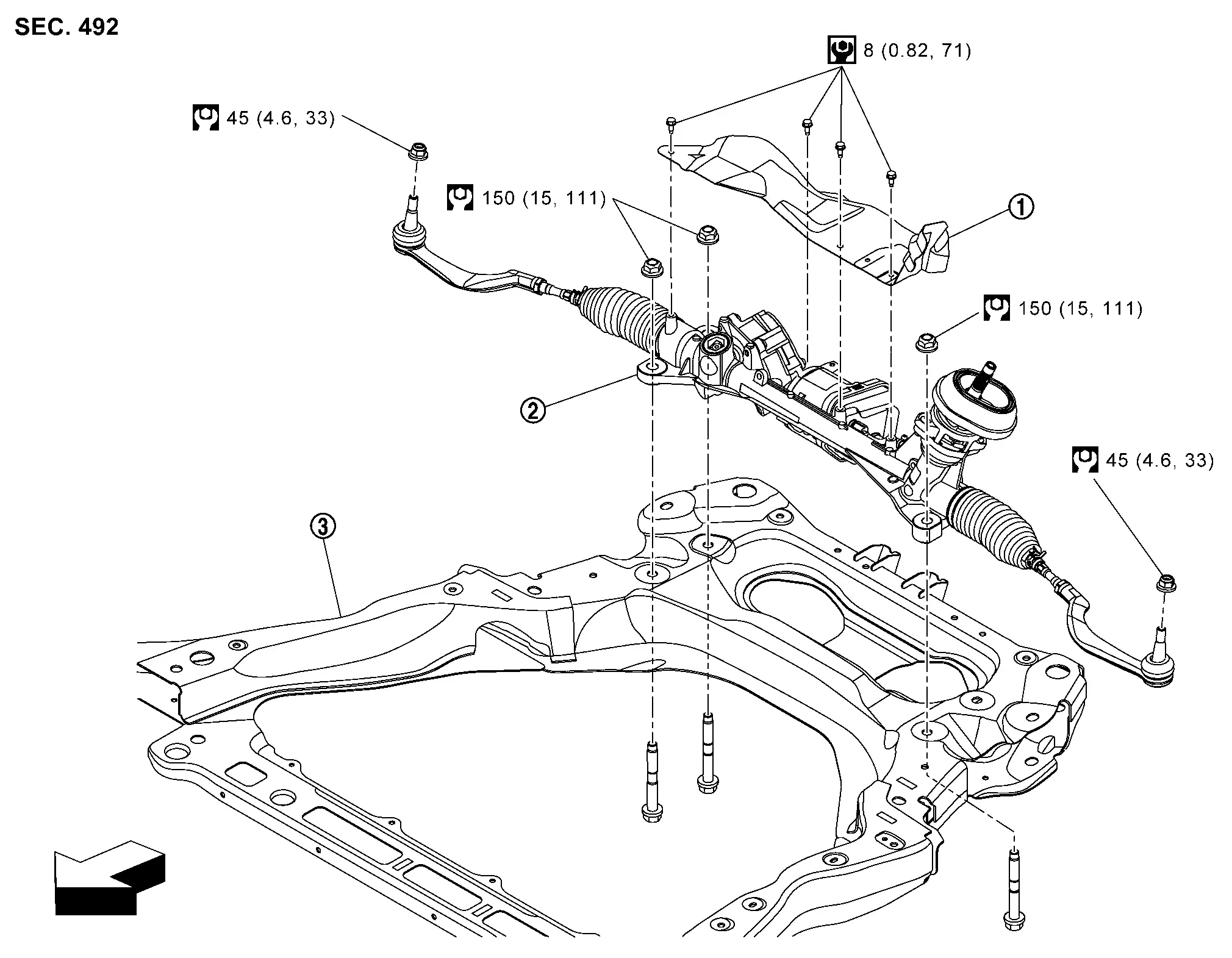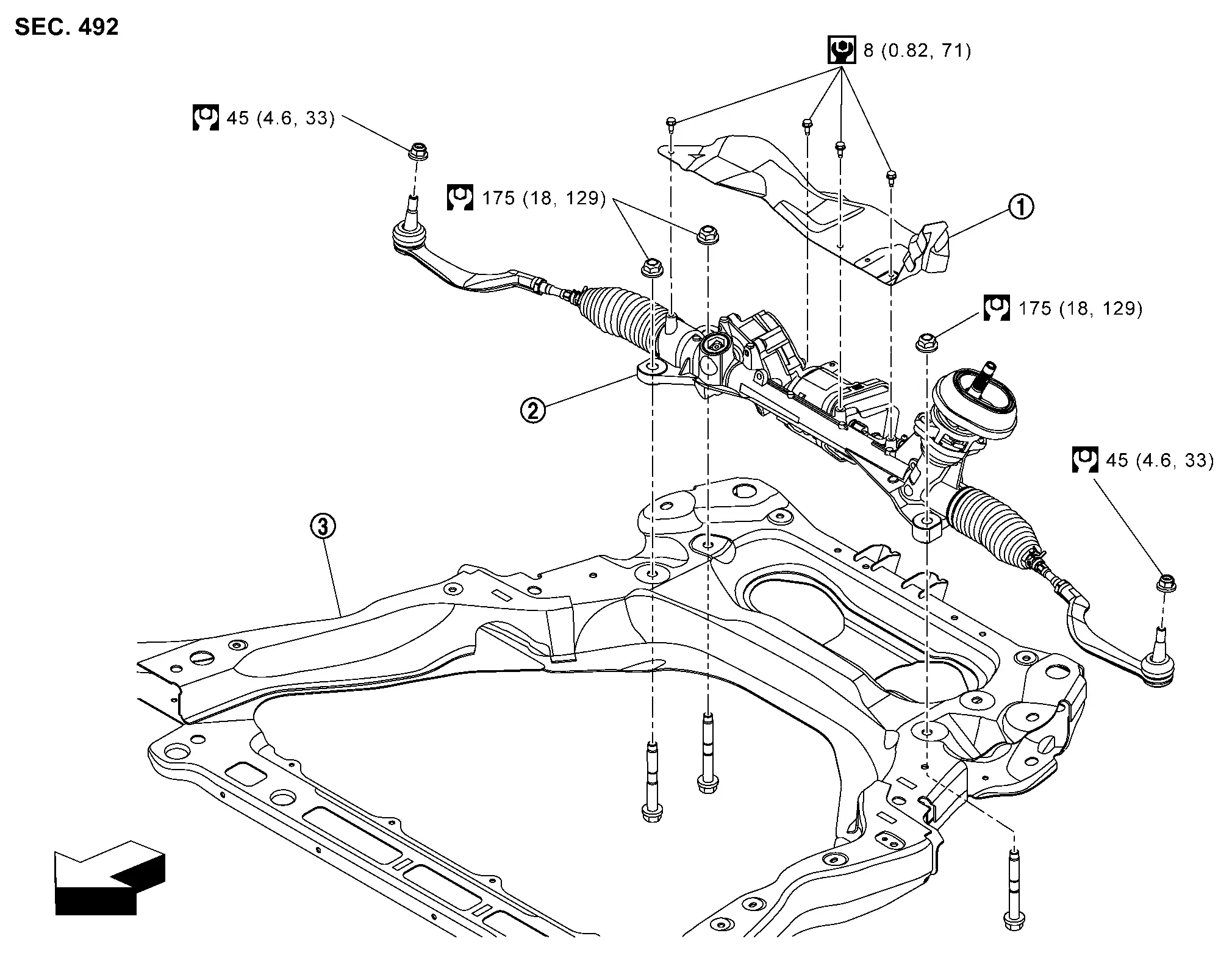 Nissan Rogue (T33) 2021-Present Service Manual: Unit Removal and Installation :: Steering Gear and Linkage