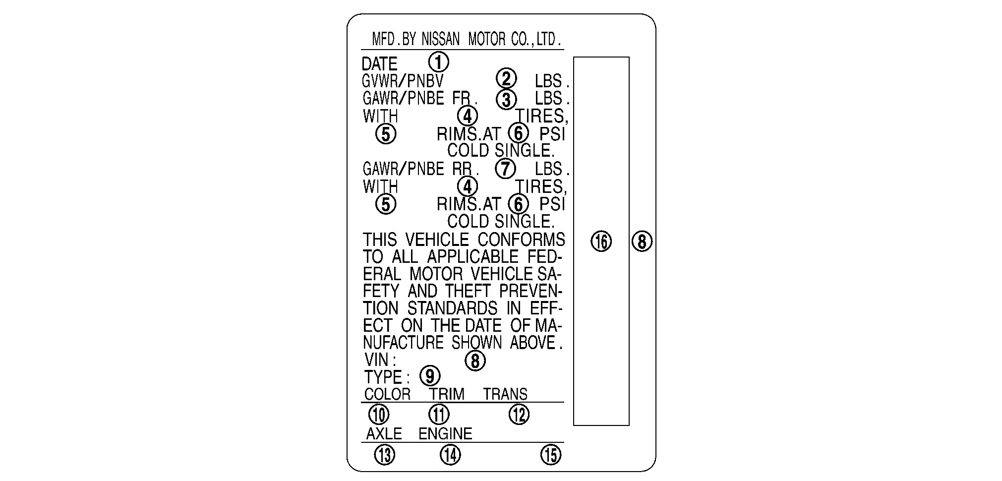 | 16. | VIN bar code | — | — | — | — |