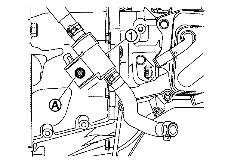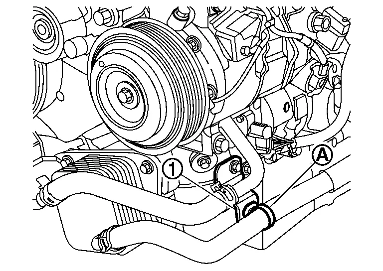 Remove clip (A) of CVT water hose from bracket (1).