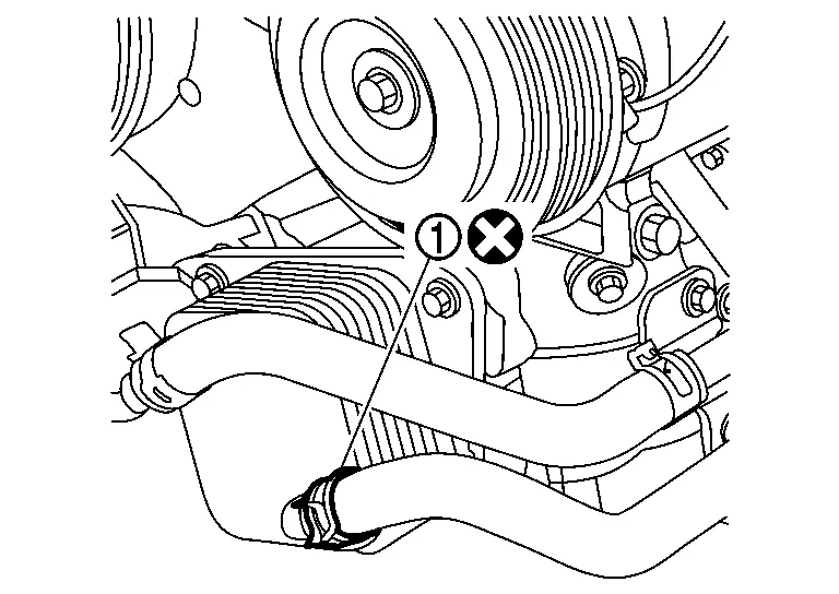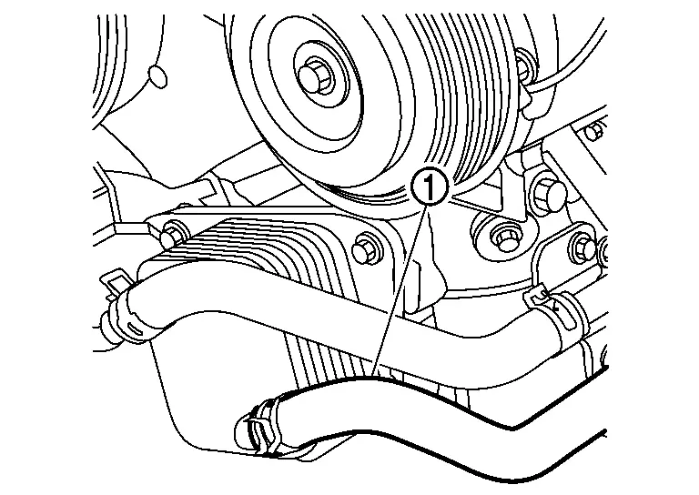 Remove CVT water hose (1) from oil cooler.