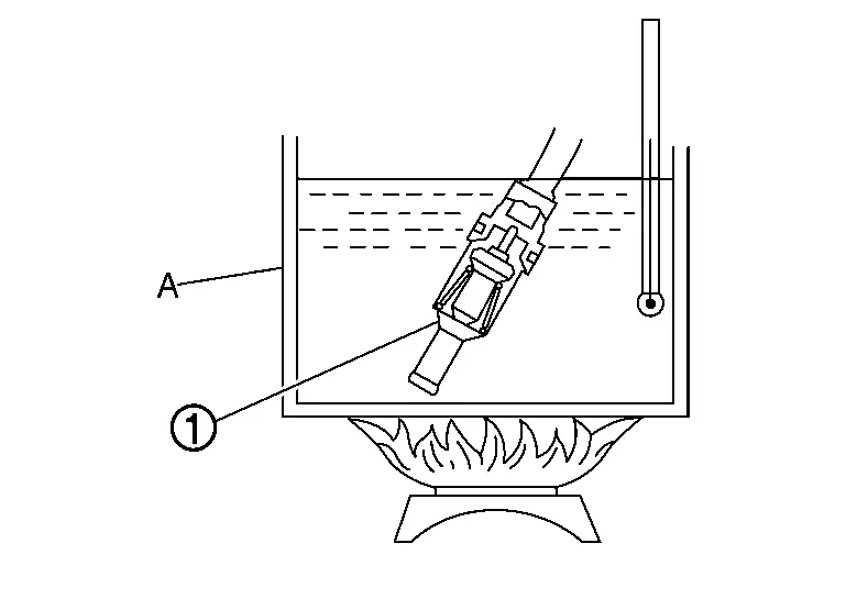 Fully immerse the water control valve (1) in a container (A). Continue heating the water while stirring.
