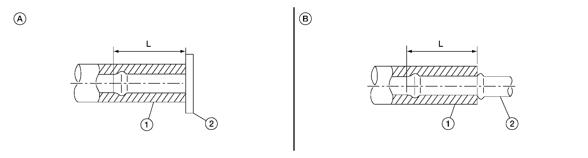 | Water hose 1. | Installation side tube 2. | Direction of paint mark | Hose insertion depth (L) |