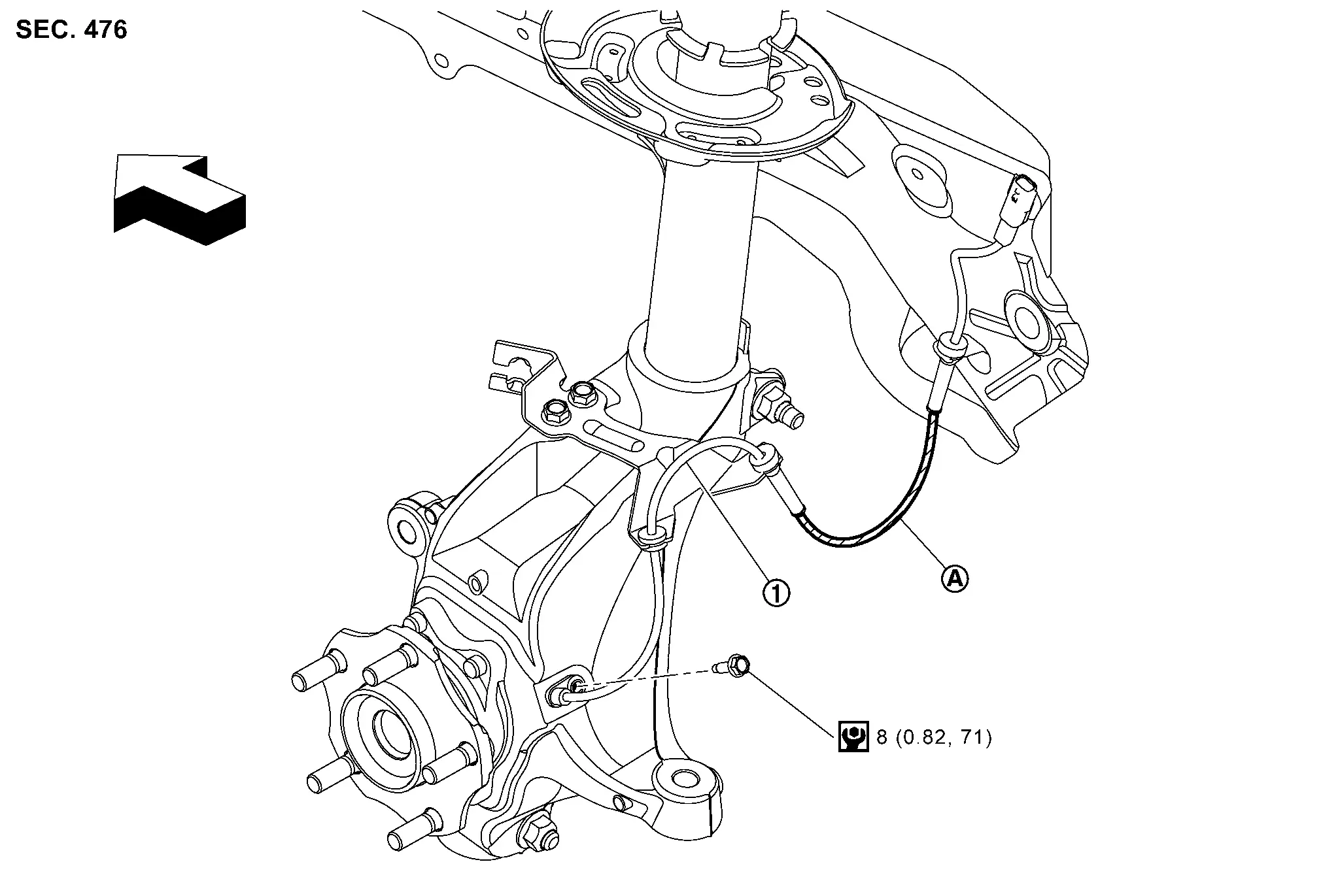 Check that front wheel sensor identification line faces toward the Nissan Ariya vehicle front.