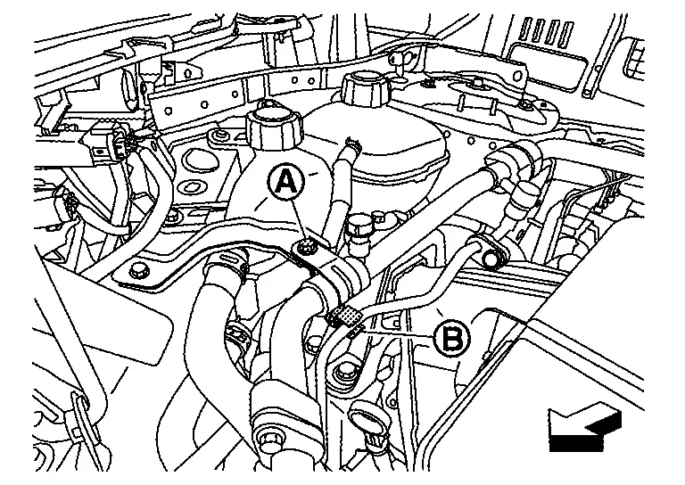 Remove High-pressure pipe mounting bolt (A) and low-pressure pipe fix clip (B).